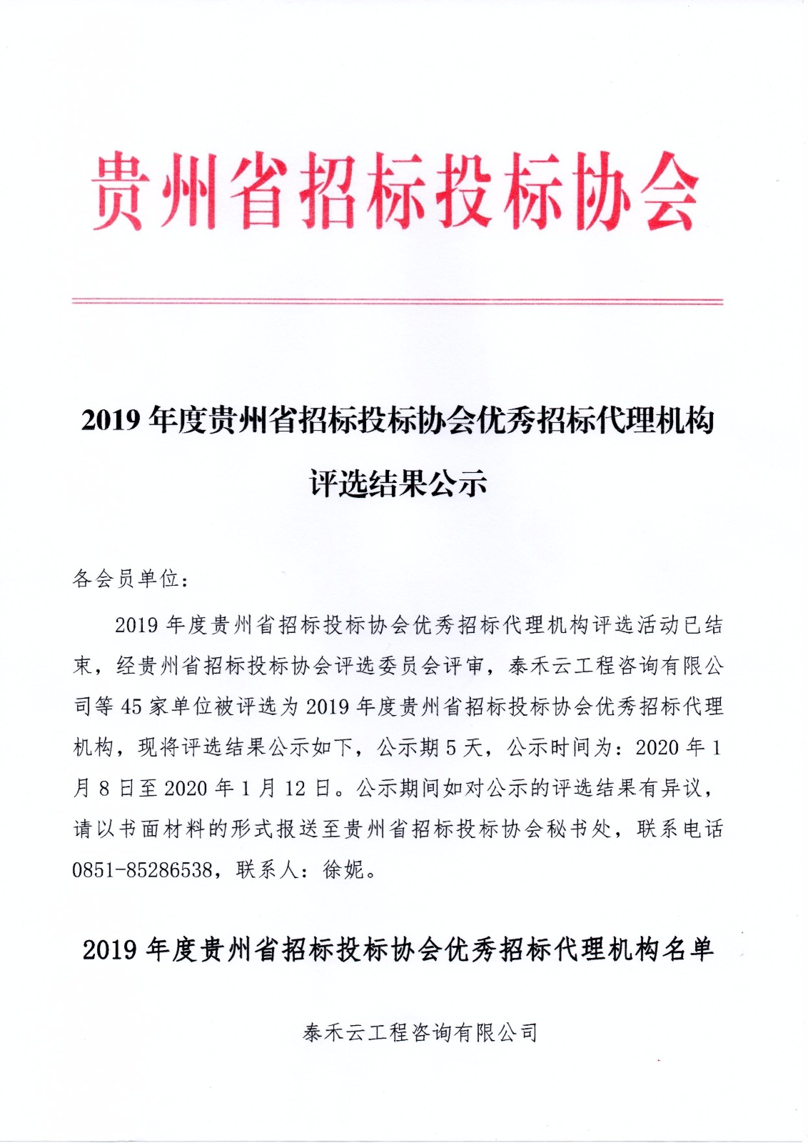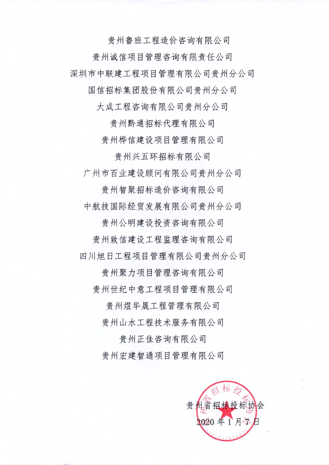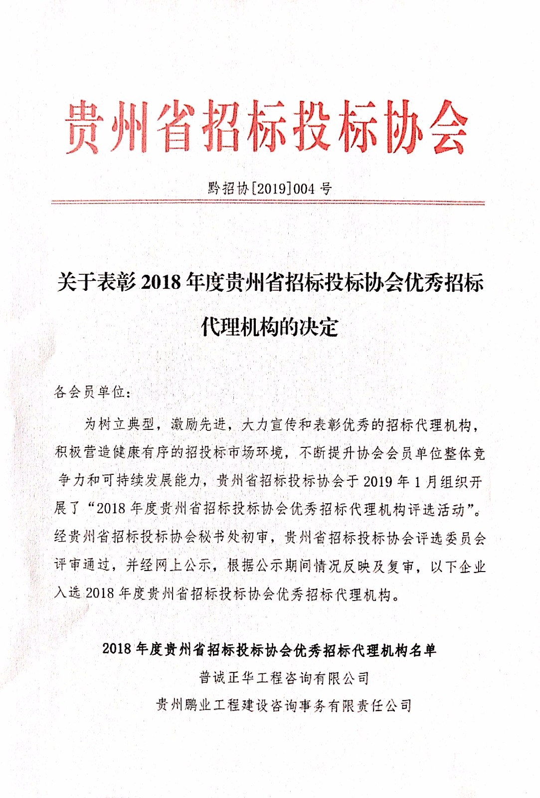 2018-2019年貴州省招標代理機構(gòu)連續(xù)兩年優(yōu)秀